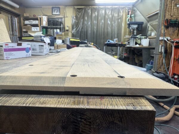 だけど、実際は接合面の湾曲だけじゃなく上下方向の反りやねじれもあって、単純な芋矧ぎでは強度的にも不安があったので今回はビスケットを使ってビスケットジョイントとしました。
