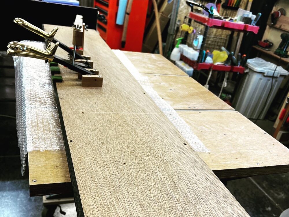 ポリエステルなのでかなり粗い番手のペーパーから細かい番手のペーパーまで徐々に細かくしながら削っていきます。